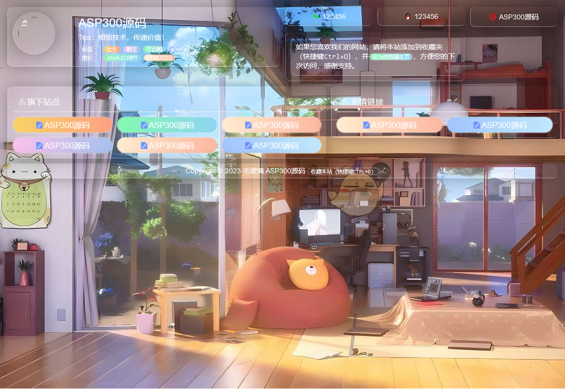 自适应毛玻璃效果的个人引导页html源码