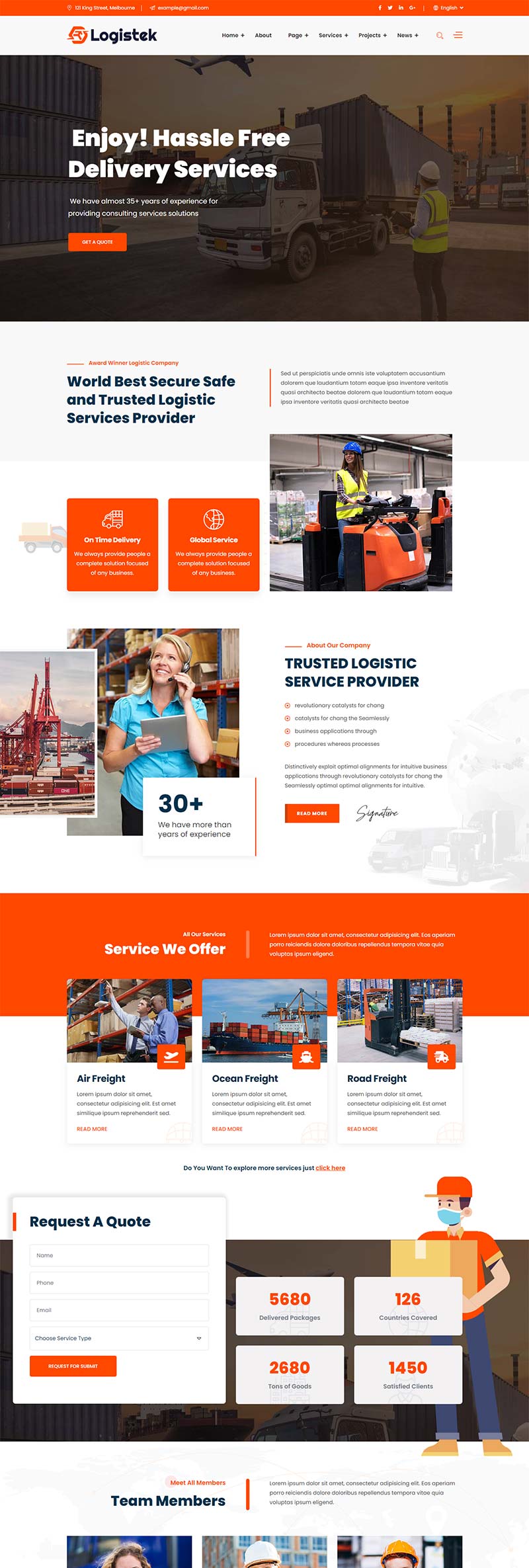 一款橙色响应式的商业物流公司,集装箱物流,物流快递行业网站html5模板。包含25个有效的html页面和2个主页演示。您可以根据自己的选择很容易地更改任何部分。