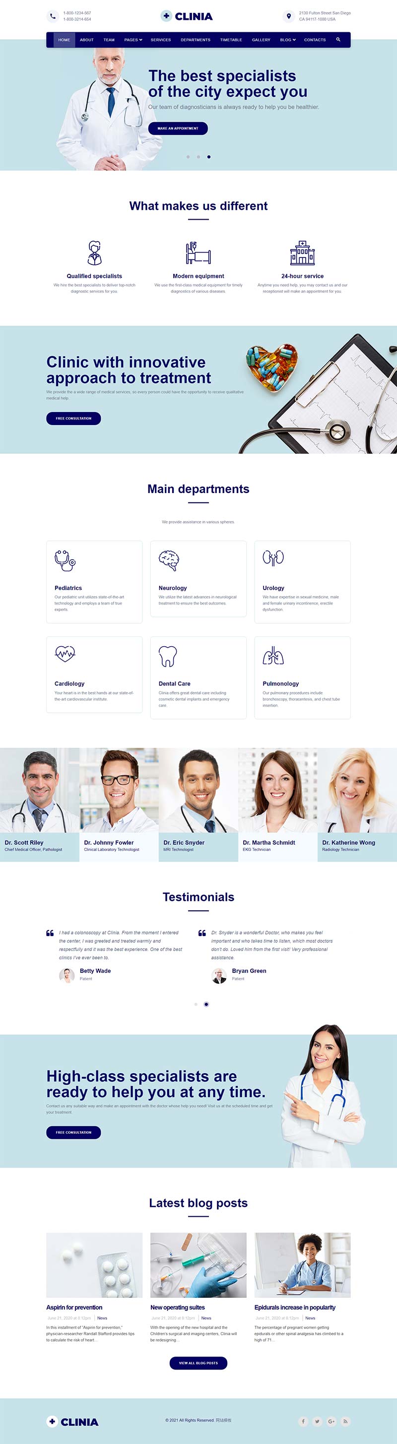 基于bootstrap构建,响应式医疗诊所,医疗健康,体检中心服务网站模板。
