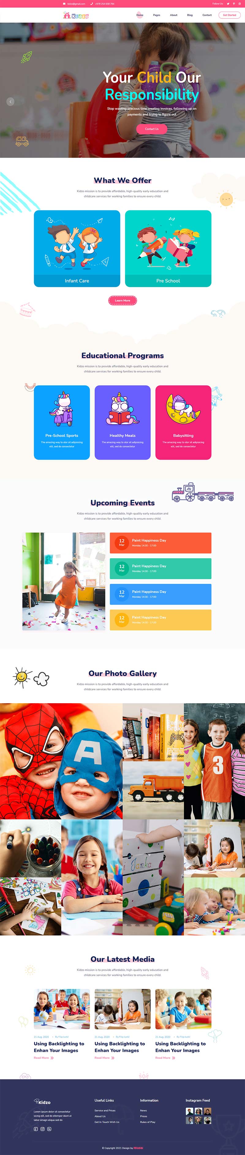一款卡通创意的儿童教育和儿童学习网站模板。包含:学校课程、教员、设施、课程、教师、活动、学术体系和其他活动等页面。适用于:儿童护理,儿童学校网站,儿童网站模板,儿童课程,儿童学习应用程序。