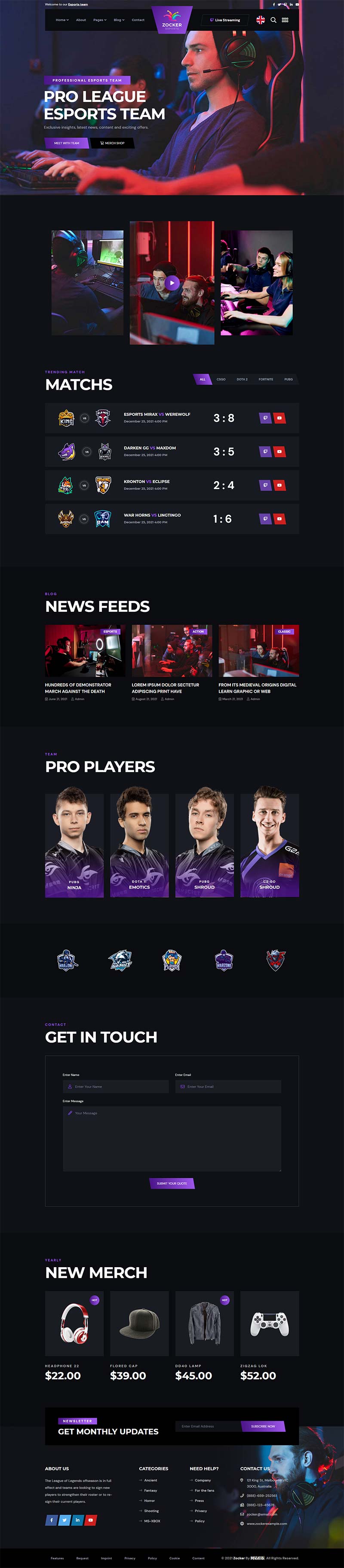 一款黑色创意的电子竞技和职业游戏比赛官网响应式模板。适用于:电子竞技、游戏新闻、部族页面、在线游戏门户的HTML模板。包含:关于我们,游戏新闻,团队,常见问题,定价计划,推荐,游戏,画廊,新闻,联系人等等。因此,这个模板肯定会给你的游戏业务网站!