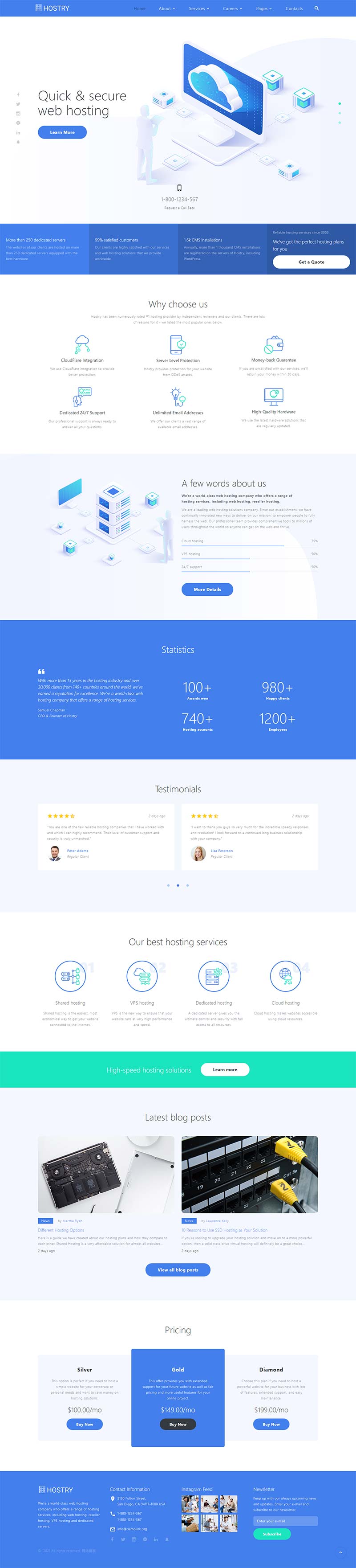 一款蓝色简洁的网站托管公司,服务器租赁公司,域名主机托管网站响应式模板HTML下载。
