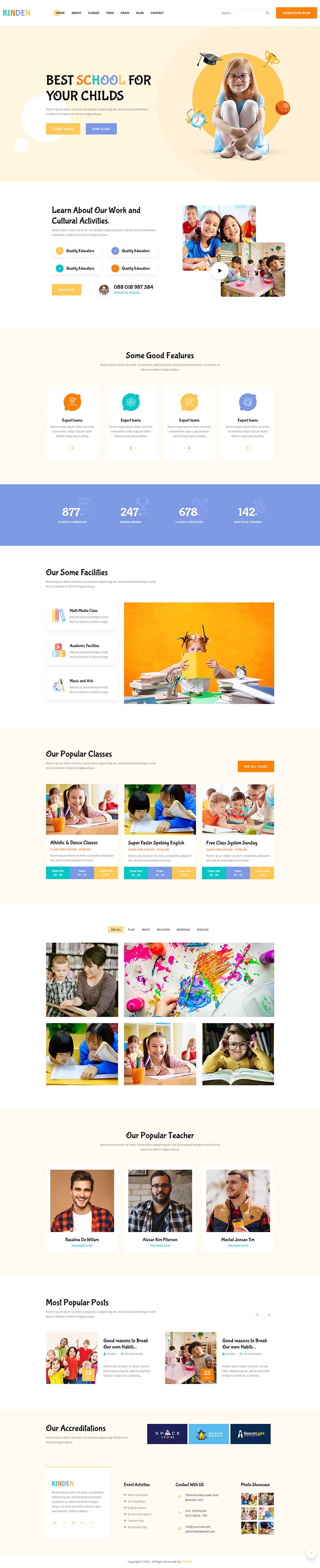 一款功能强大的幼儿园学校,儿童教育服务网站响应式模板。适用于:儿童,幼儿园,博客,学校,儿童学习,儿童护理之家相关网站。