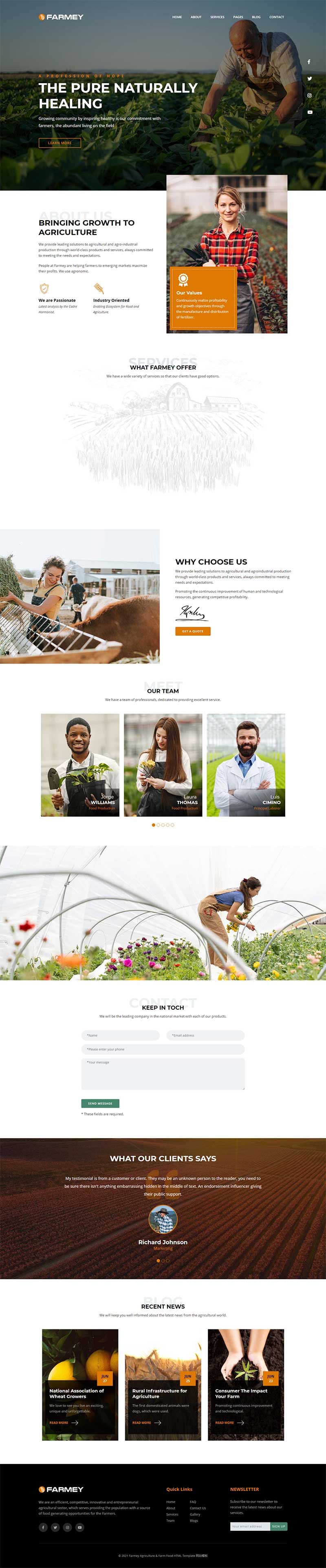 一款绿色响应式的有机食品农业种植公司网页模板。非常适合农业、农场和有机食品等业务。该模板包含各种各样的页面,这些页面将帮助您的公司呈现基本信息,以突出显示服务和最相关的业务信息。它是完全可定制的,响应式布局,一个美丽和现代的布局。