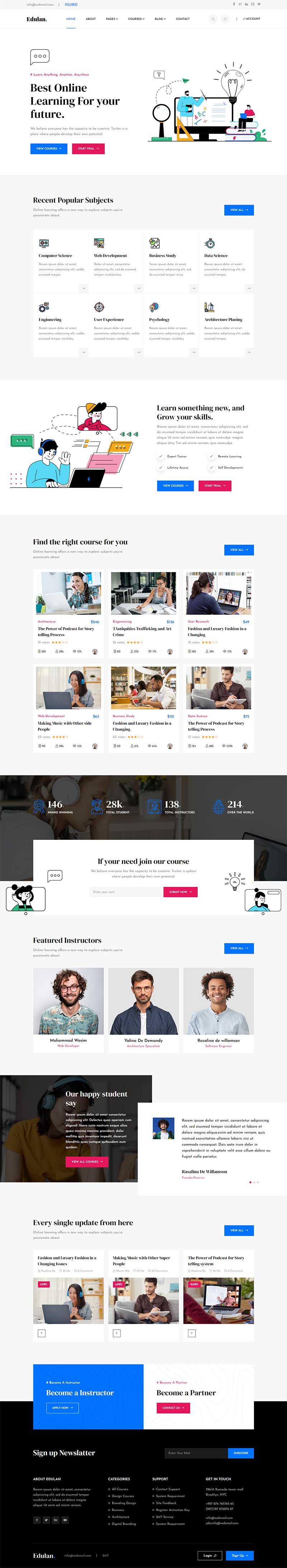 一款简洁响应式的课程教育,在线学习网站HTML模板。你可以建立一个LMS教育网站,导师LMS,设计课程,商业课程,培训中心,课程中心,学院,学院,大学,学校或博客网站与Edulan。定制的可能性是无限的。总共包含16个HTML文件。这个设计很有创意和独特性,也很容易定制和使用。