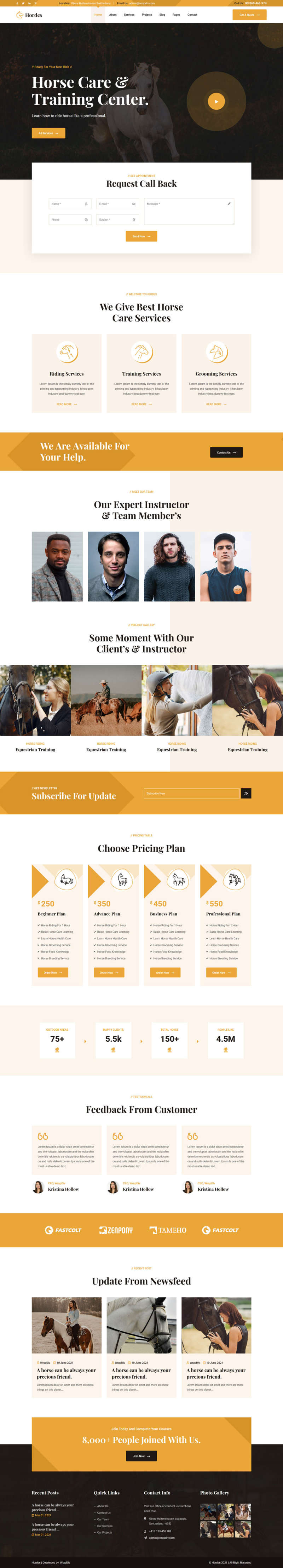 一款使用bootstrap构建,大气的骑马训练学校网站HTML模板。适用于:马术训练,马厩服务,马术协会,养马牧场类网站。