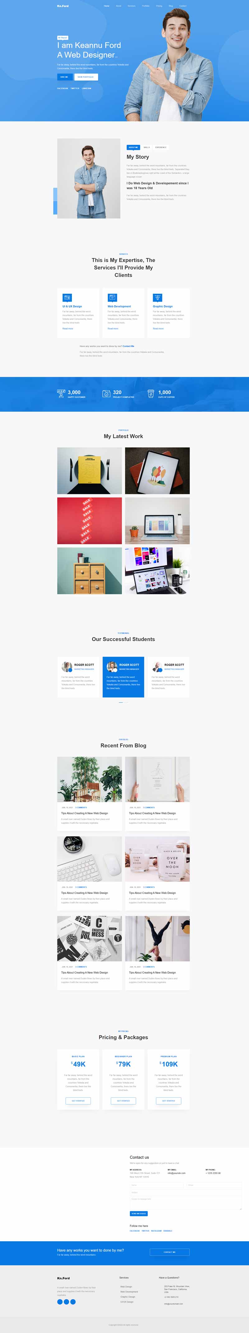 这是一款适合前端工程师的2022蓝色html简历模板,该模板功能齐全,满足了一切个人网站所需展示功能,响应式设计自由编辑,也可以用作其他任何职业的展示。