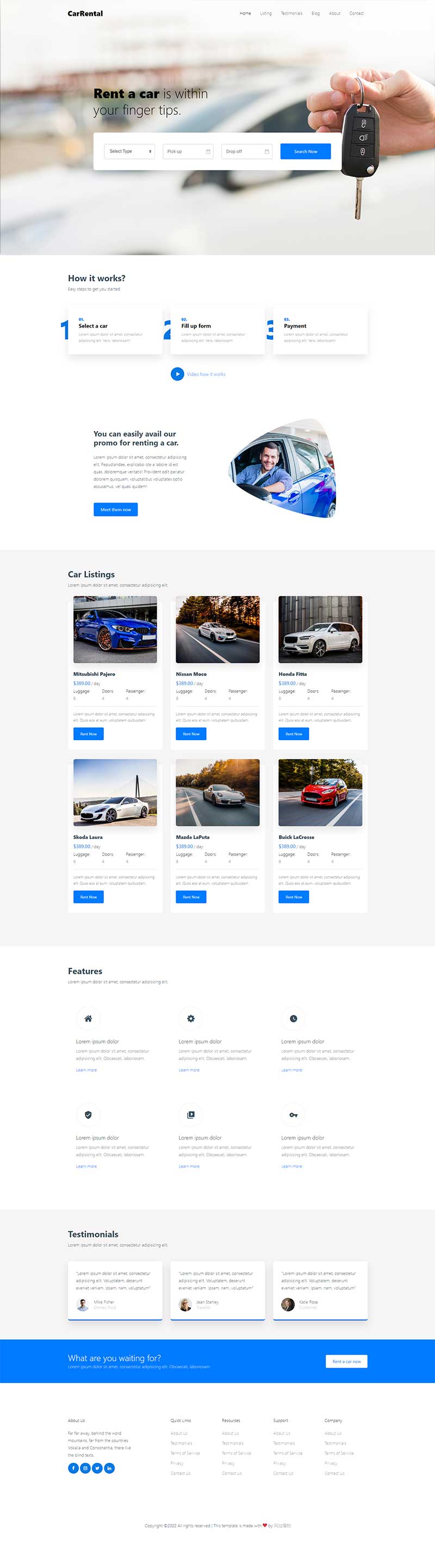 汽车与我们的生活息息相关,小编今日分享一款汽车租赁网站源码,大气的汽车网站设计模板,简约大方的设计页面,可以适用于汽车服务、汽车租赁、汽车清洁等等网站