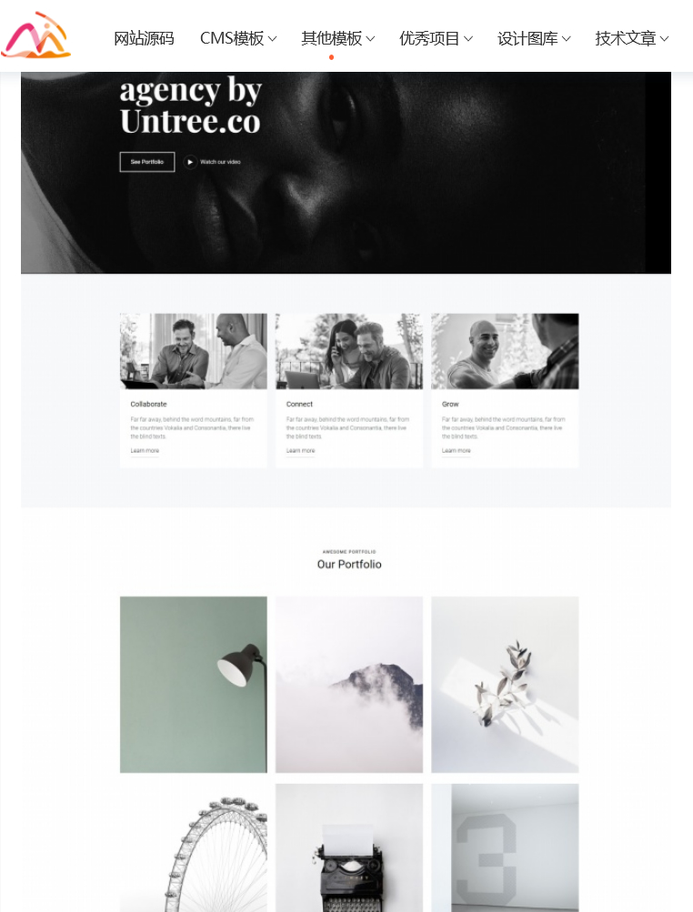 黑白风创意设计机构宣传网站模板是一款适合从事各类创意作品设计的公司网站模板下载。提示:本模板调用到谷歌字体库,可能会出现页面打开比较缓慢。