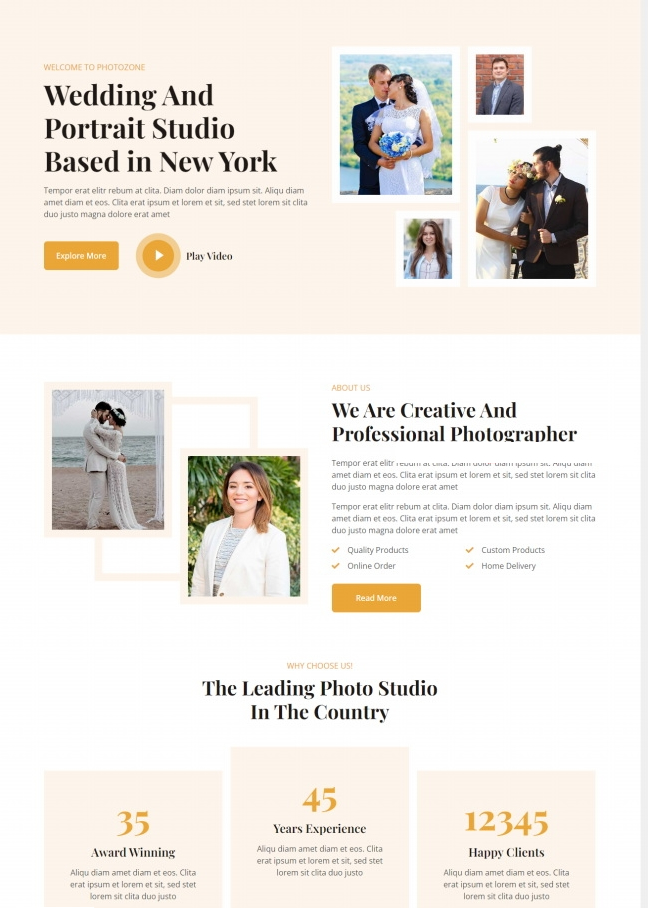 婚纱摄影工作室HTML5网站模板是一款适合从事婚纱摄影行业的婚纱机构网站模板下载。提示:本模板调用到谷歌字体库,可能会出现页面打开比较缓慢。