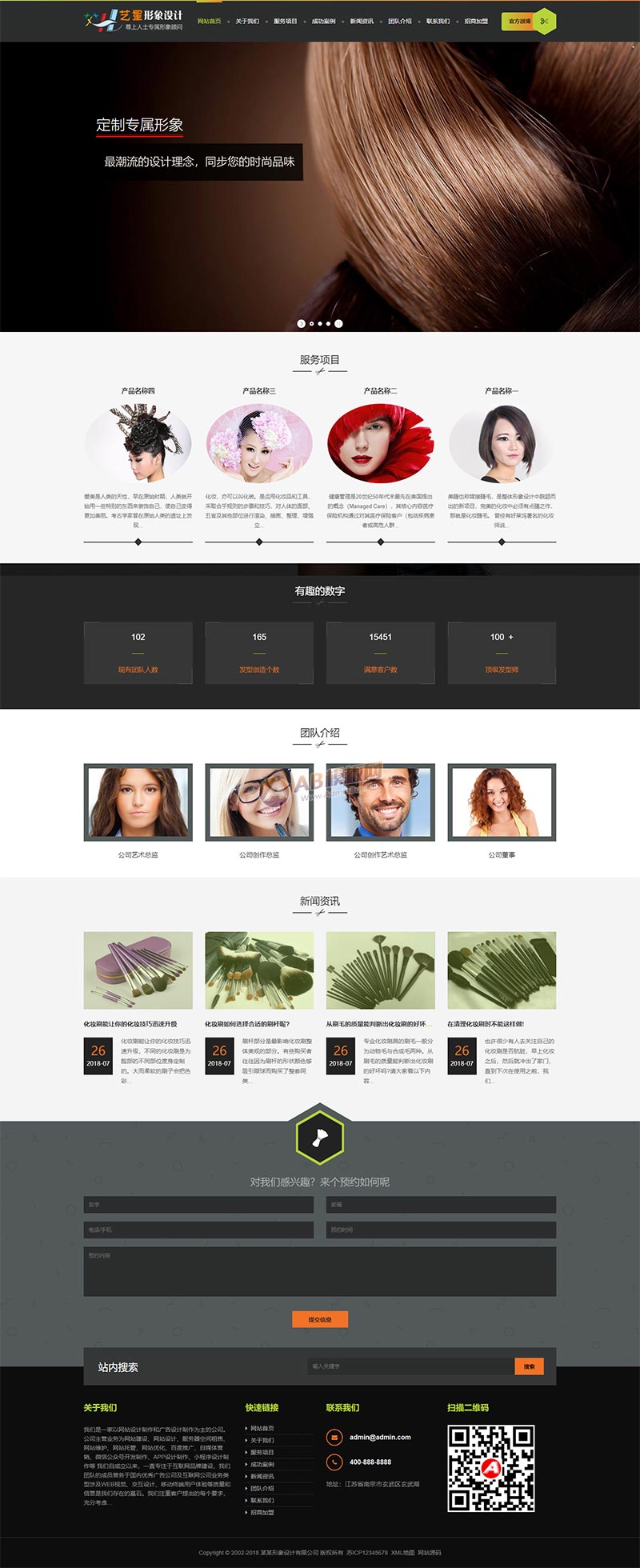 本套织梦模板采用织梦5.7内核开发的模板,这款模板使用范围广,不仅仅局限于一类型的企业,形象设计、美容美发类的网站都可以用该模板。你只需要把图片和文章内容换成你的即可,颜色都可以修改,改完让你耳目一新的感觉!布局规整,利于用户体验,手工书写DIV+CSS,代码精简。