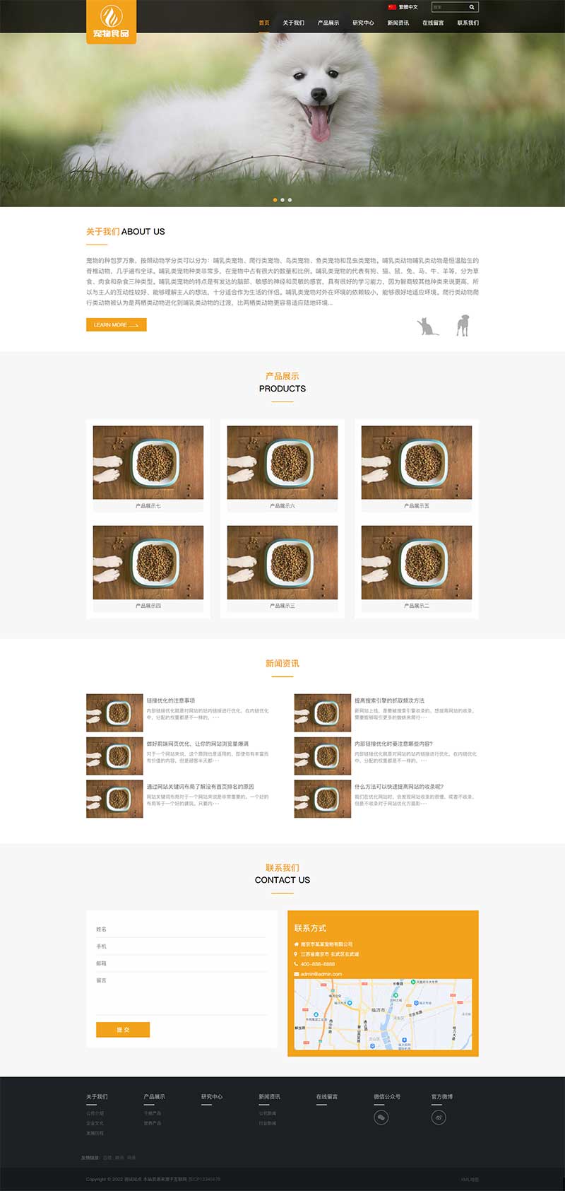 PbootCMS内核开发的网站模板,该模板适用于宠物粮食网站、猫粮狗粮网站等企业,当然其他行业也可以做,只需要把文字图片换成其他行业的即可;