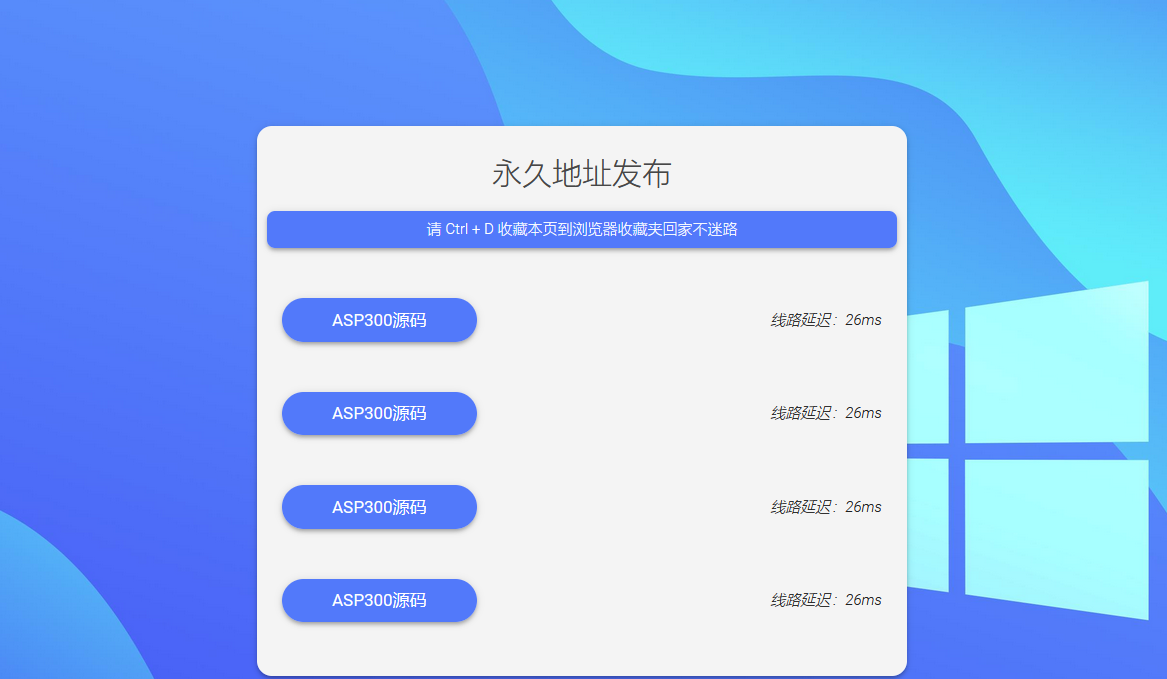 蓝色简洁引导页带延迟检测源码,源码开源无加密,自适应,支持显示网址延迟,非常适合做网址发布页。