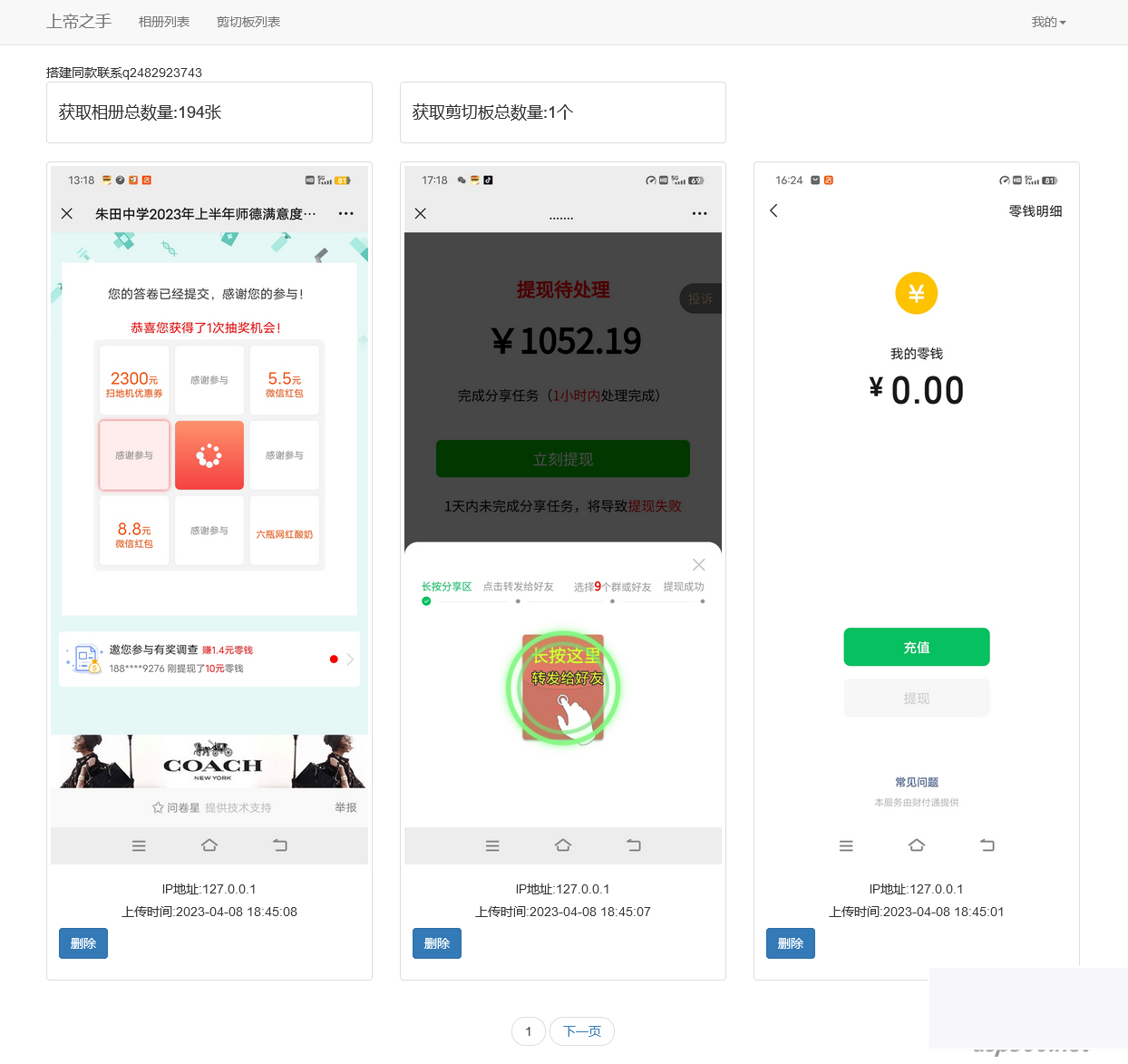 上帝之手后台源码,后台自动获取对方手机相册照片和手机剪切板内容,网恋终结者,仅包含后台源码无对接教程,源码仅供学习参考。