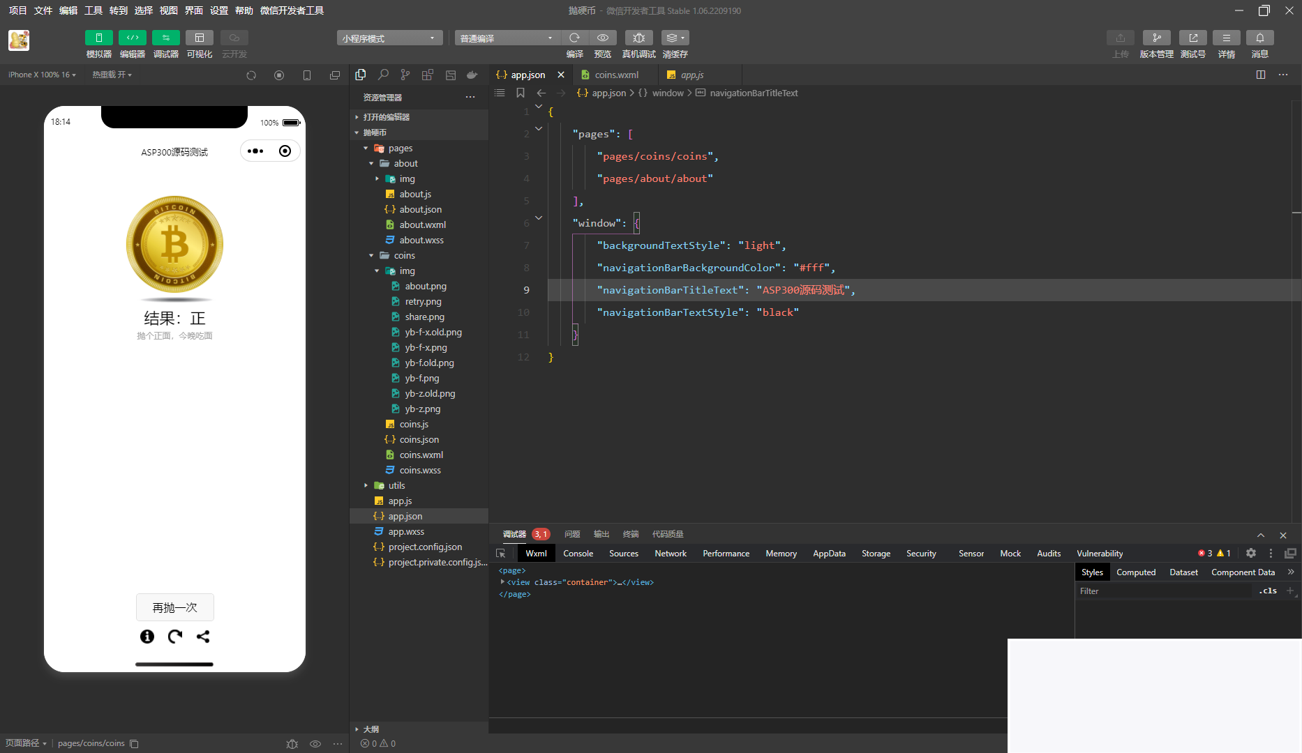 这个小程序也就是一个简单的抛硬币