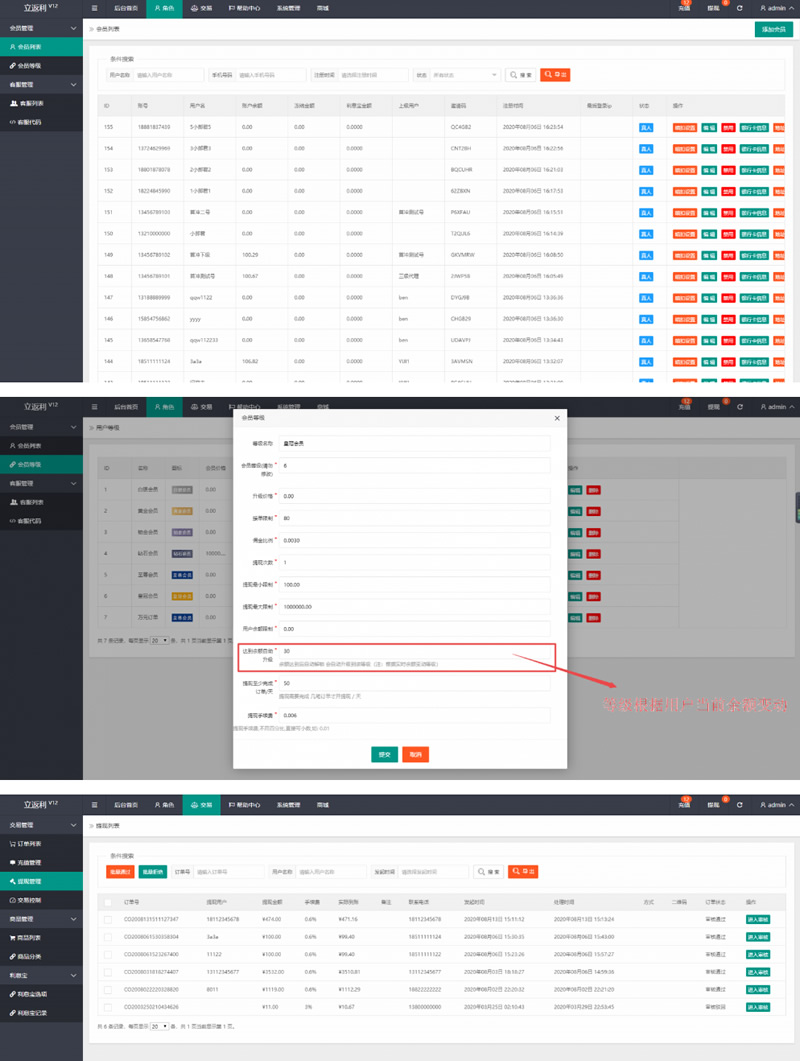 2.用户等级升级方式:根据用户当前余额进行自动【升级】或者【降级】