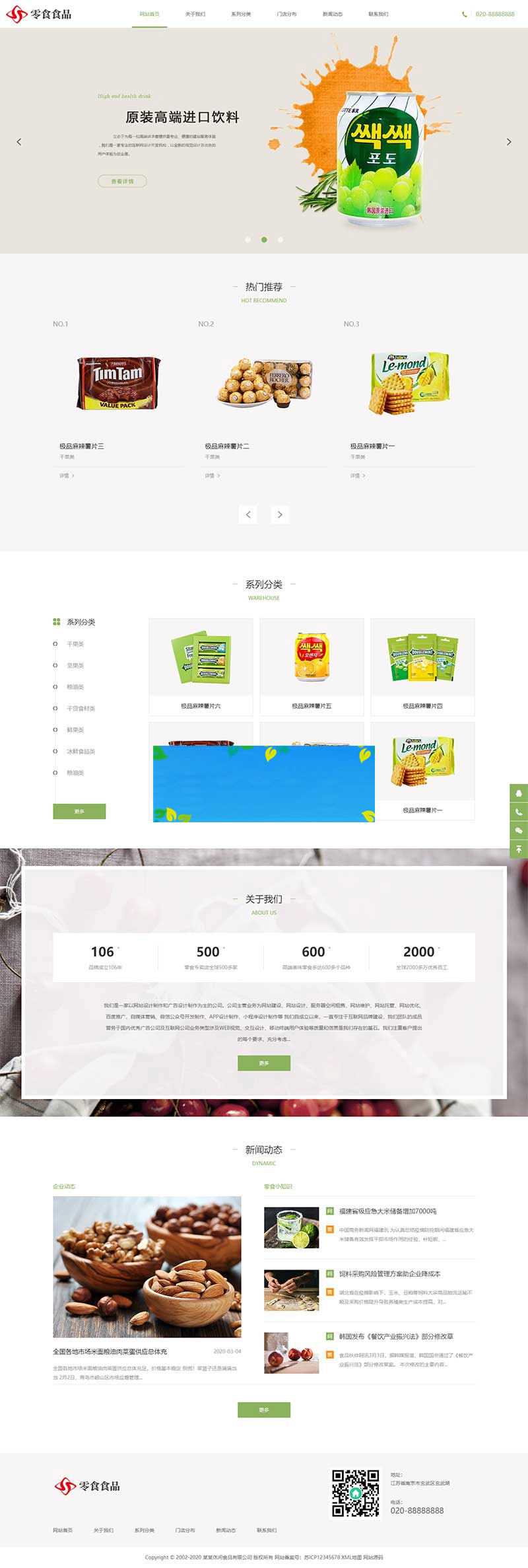本套织梦模板采用织梦最新内核开发的模板,这款模板使用范围广,不仅仅局限于一类型的企业,食品网站、零食连锁店网站类的网站都可以用该模板。你只需要把图片和文章内容换成你的即可,颜色都可以修改,改完让你耳目一新的感觉!布局规整,利于用户体验,手工书写DIV+CSS,代码精简。