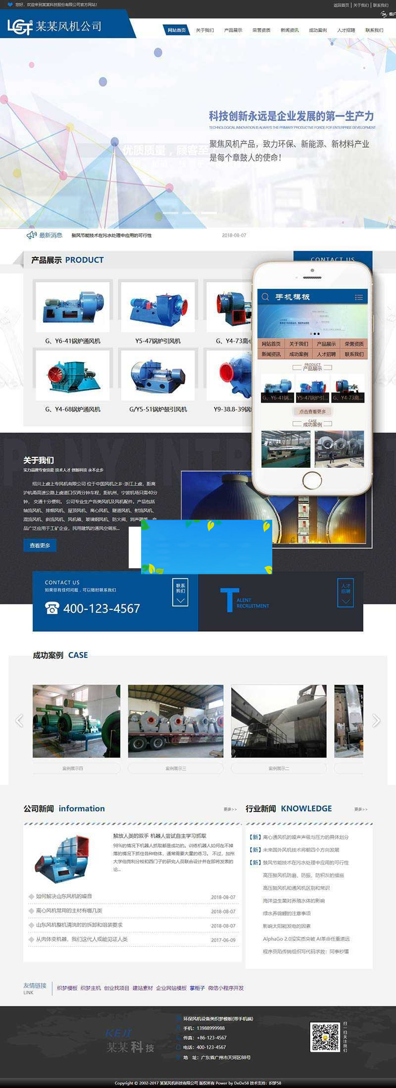 织梦dedecms环保风机设备公司网站模板(带手机移动端)