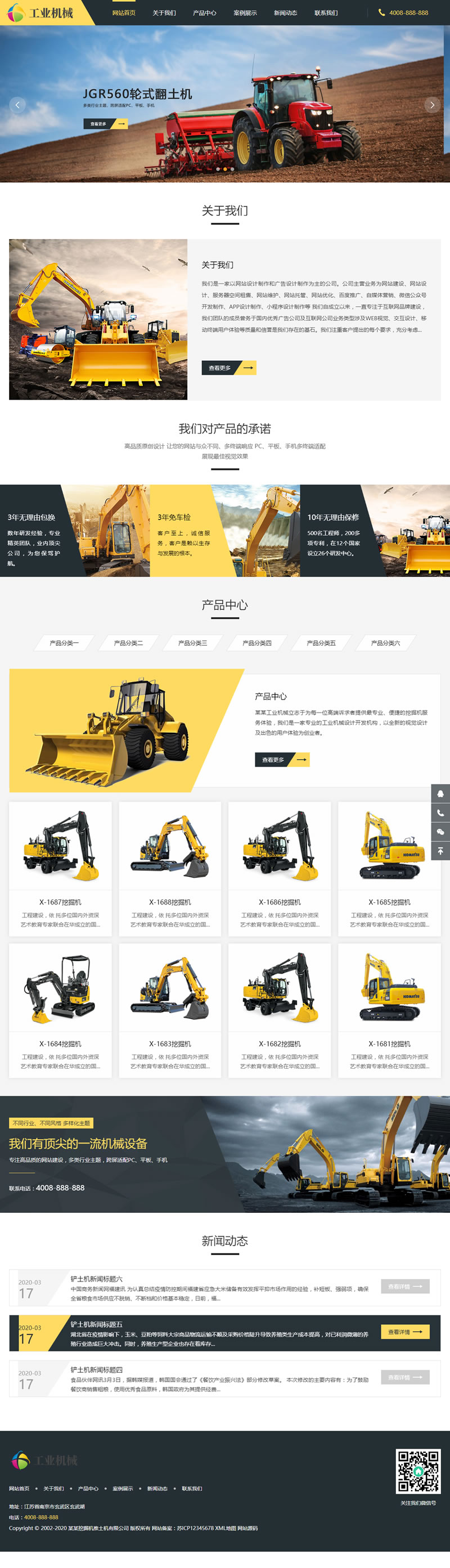 3、适用于推土机挖掘机网站模板、工矿机械设备网站源码;