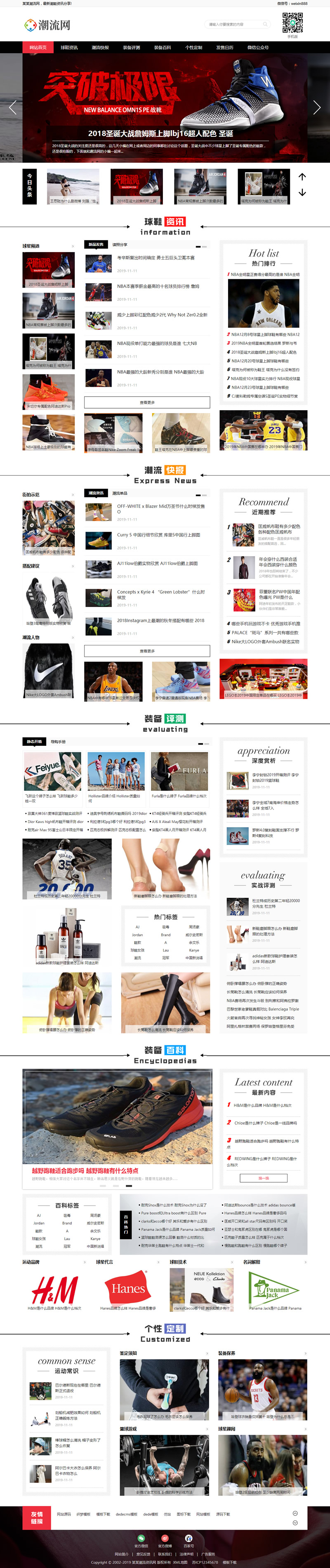 3、适用于潮流资讯织梦模板、球鞋装备网站源码;