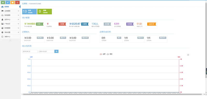 带三级分佣推广系统首页任务接单,主要分为抖音和快手任务关注点赞,用户可以领取符合要求的任务,复制任务打开app关注和点赞,截图提交,