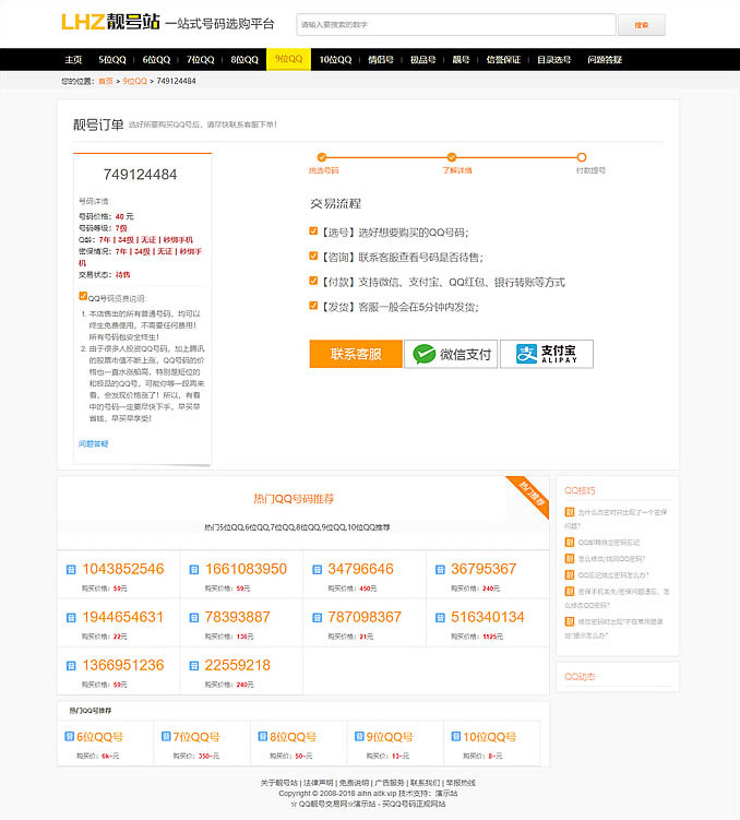 QQ号码/手机号交易平台,QQ靓号买卖网站源码,网络账号在线发布交易平台整站源码!适用于各种靓号在线选号交易平台!