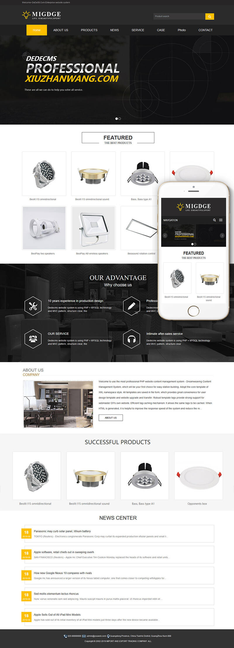 织梦最新内核开发的模板,该模板属于企业通用类、灯具、灯饰、英文、外贸类企业都可使用,