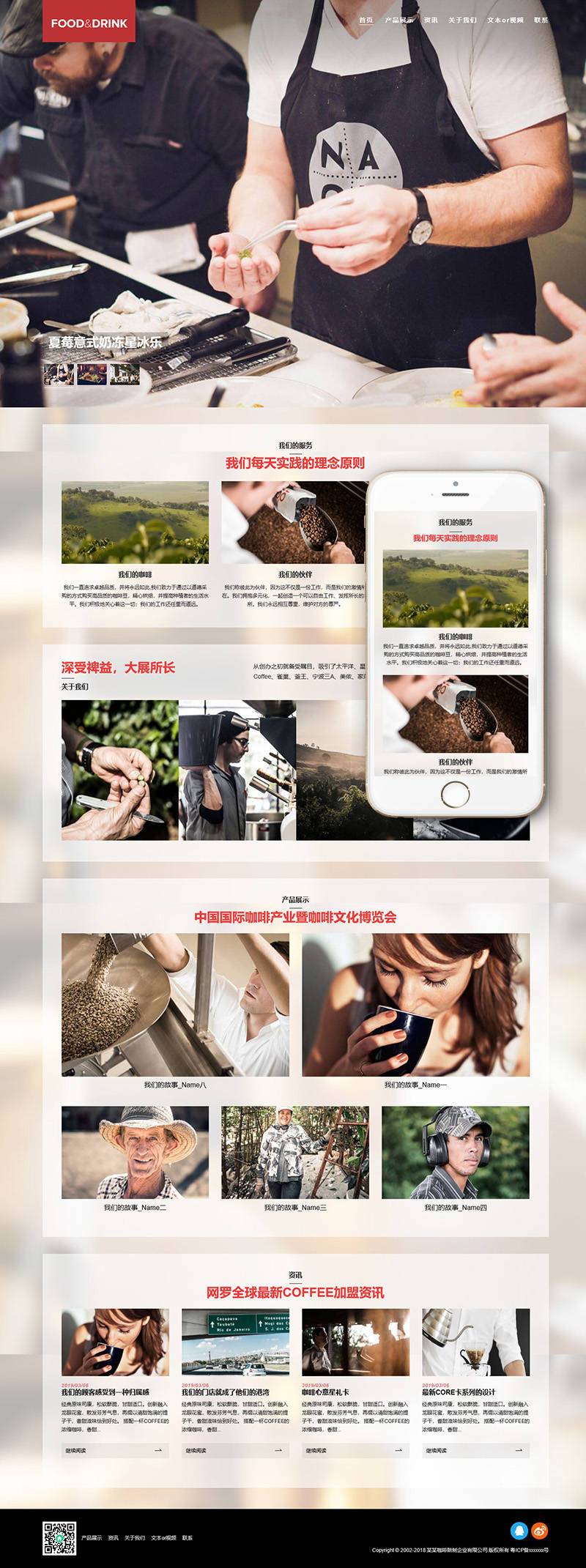 响应式咖啡奶茶原料制作类网站织梦模板(自适应手机端)+PC+wap+利于SEO优化