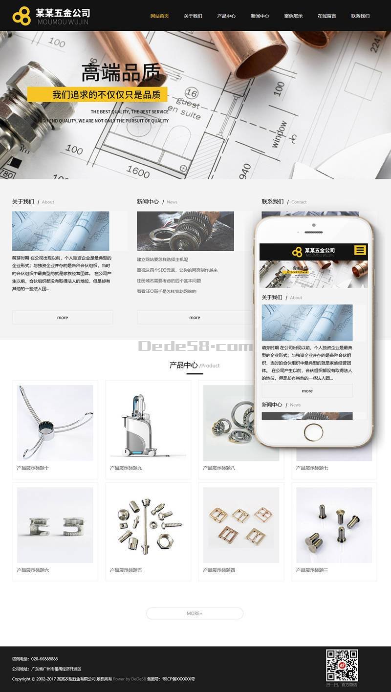 响应式衣柜五金水槽挂架类织梦模板(自适应手机端)+PC+wap+利于SEO优化