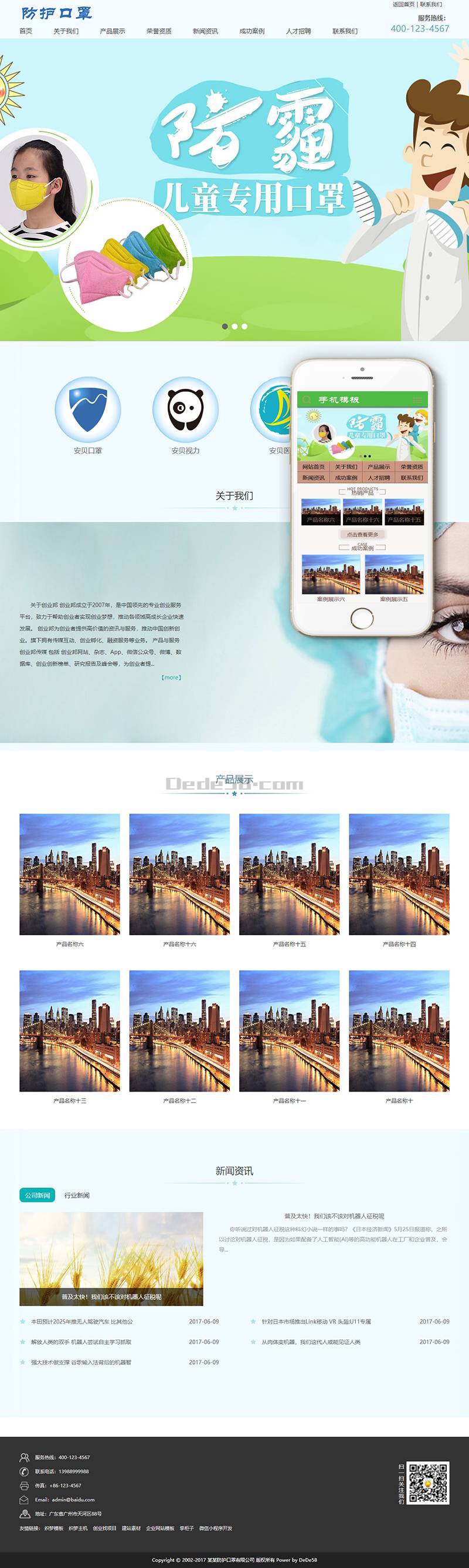 儿童医疗防护口罩类织梦模板(带手机端)+PC+移动端+利于SEO优化