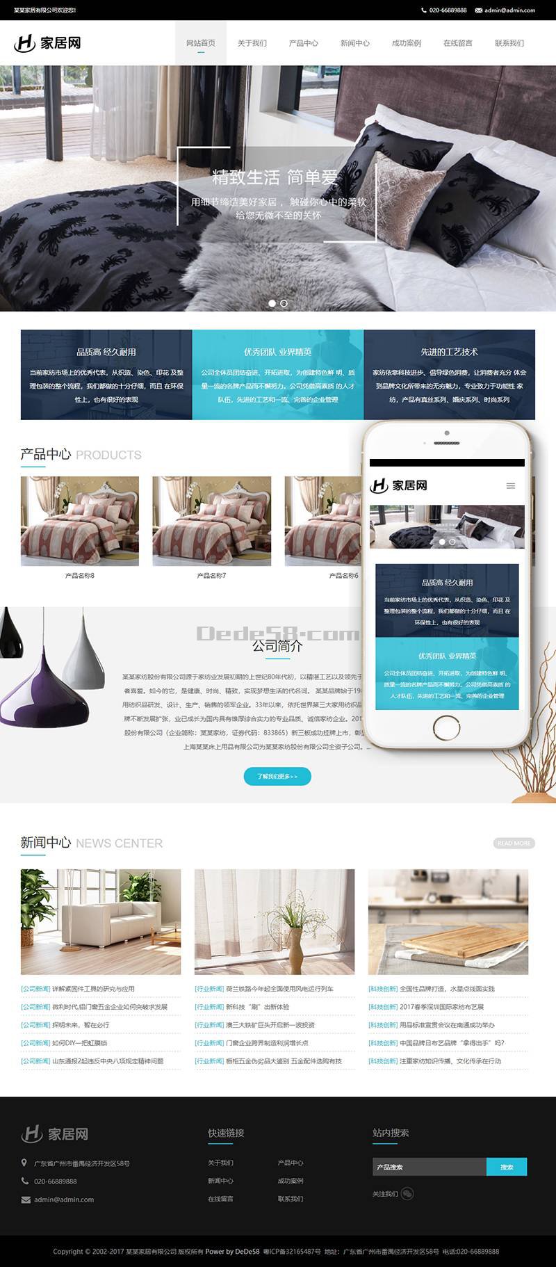 响应式家居家纺纺织品类织梦模板(自适应手机端)+利于SEO优化