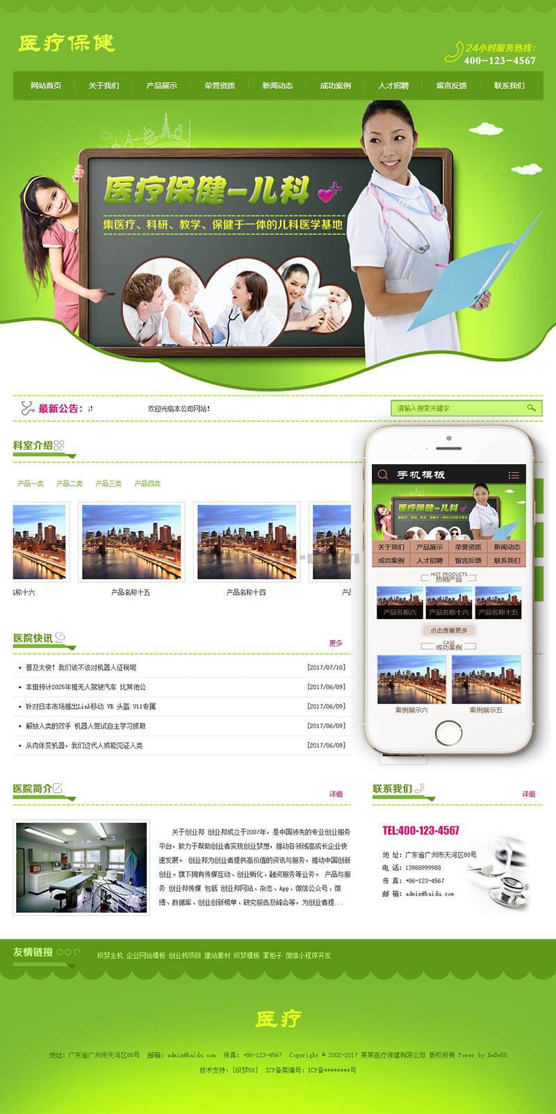 医疗保健儿科科研类网站织梦模板(带手机端)+PC+移动端+利于SEO优化