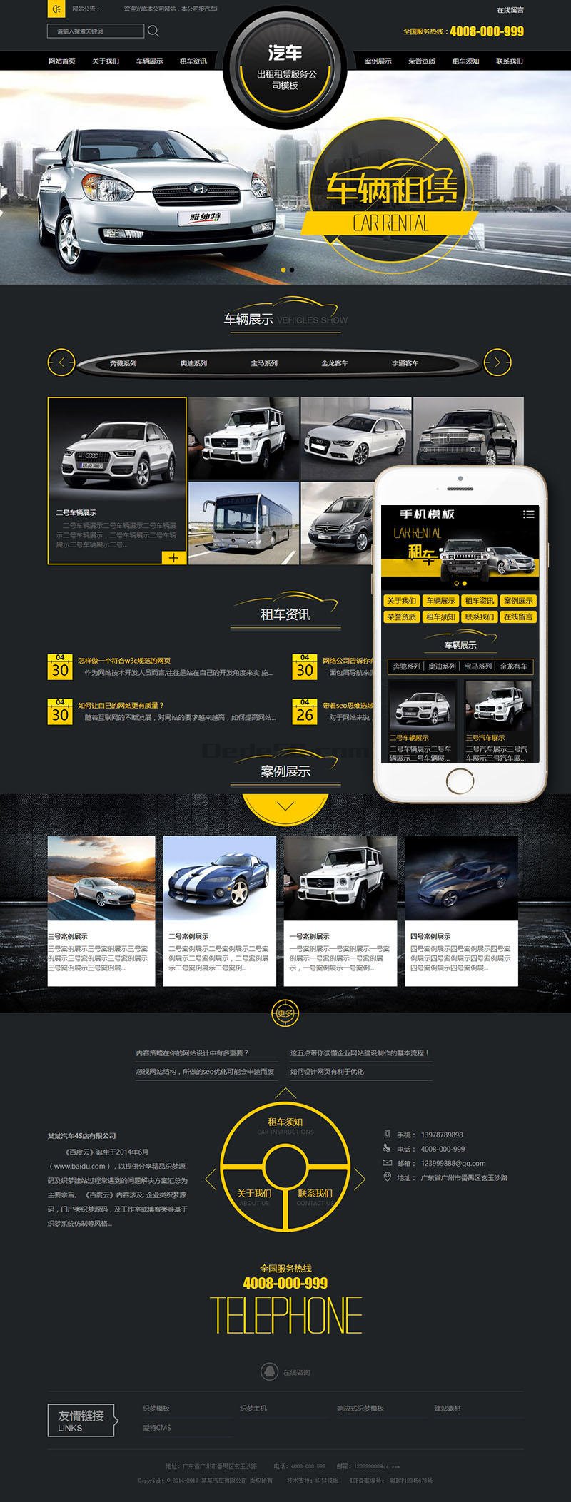 汽车租赁汽车改装维修4S店类织梦模板(带手机端)+PC+移动端+利于SEO优化