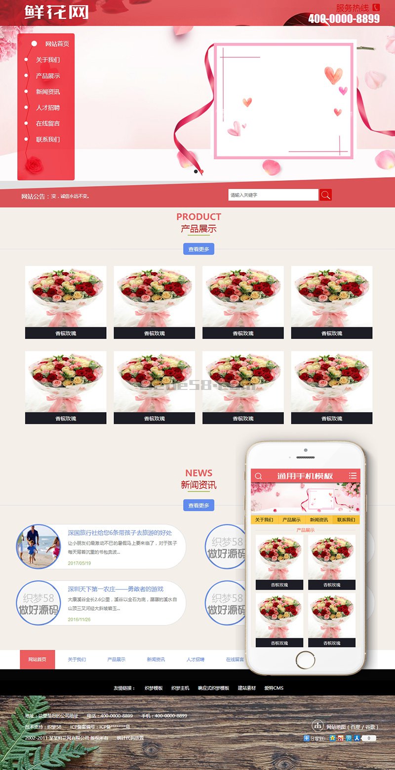 鲜花产品展示网站类织梦模板(带手机端)+PC+移动端+利于SEO优化