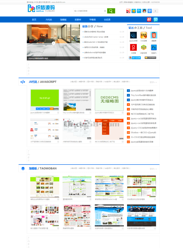 织梦蓝色大气素材站整站源码,演示网站整站打包,带测试数据及图片,不是单一的网站模版,下载之后按照安装说明安装就可以了,