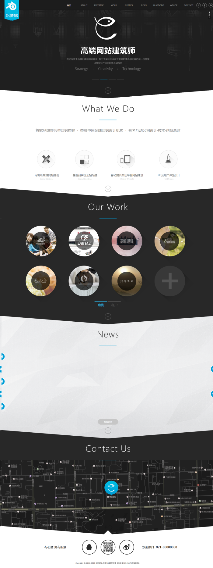 高端HTML5网站建设织梦模板(仿木鱼网络),效果相当的好,相当简洁大气高端,模板简单,全部已数据调用,只需后台修改栏目名称即可。