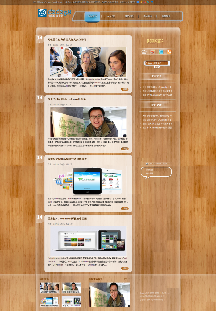 页面简洁简单,容易管理,DEDE5.5内核以上都可以使用;附带测试数据!
