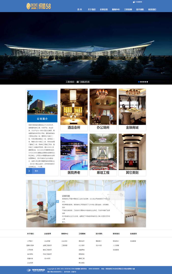 大气装饰设计建筑工程类企业织梦源码,效果相当的炫酷,相当简洁大气高端,模板简单,全部已数据调用,只需后台修改栏目名称即可。