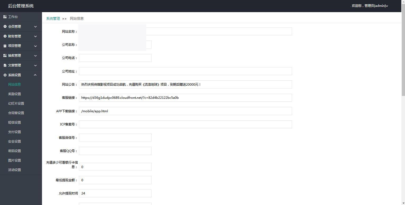 演示环境:Linux+宝塔 NX1.18+PHP5.6+MYSQL5.6 伪静态选择 thinkPHP Public/config.php 修改数据库账号密码 后台登录地址:域名/Chuhzg19tvgabxm/login.html 账号:admin 密码:www.ohbbs.cn