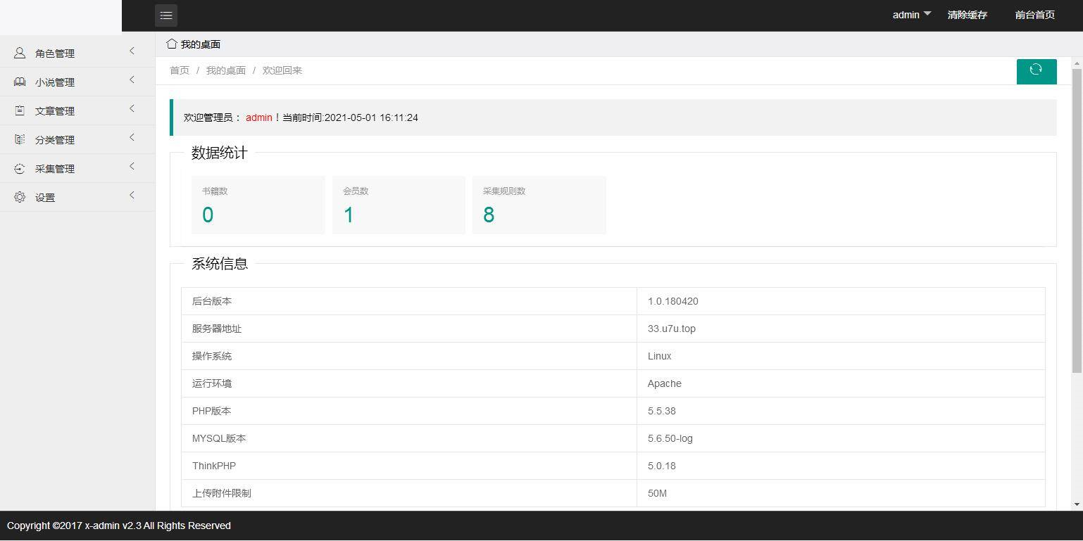 php5.5,需开启伪静态伪静态为thinkphp