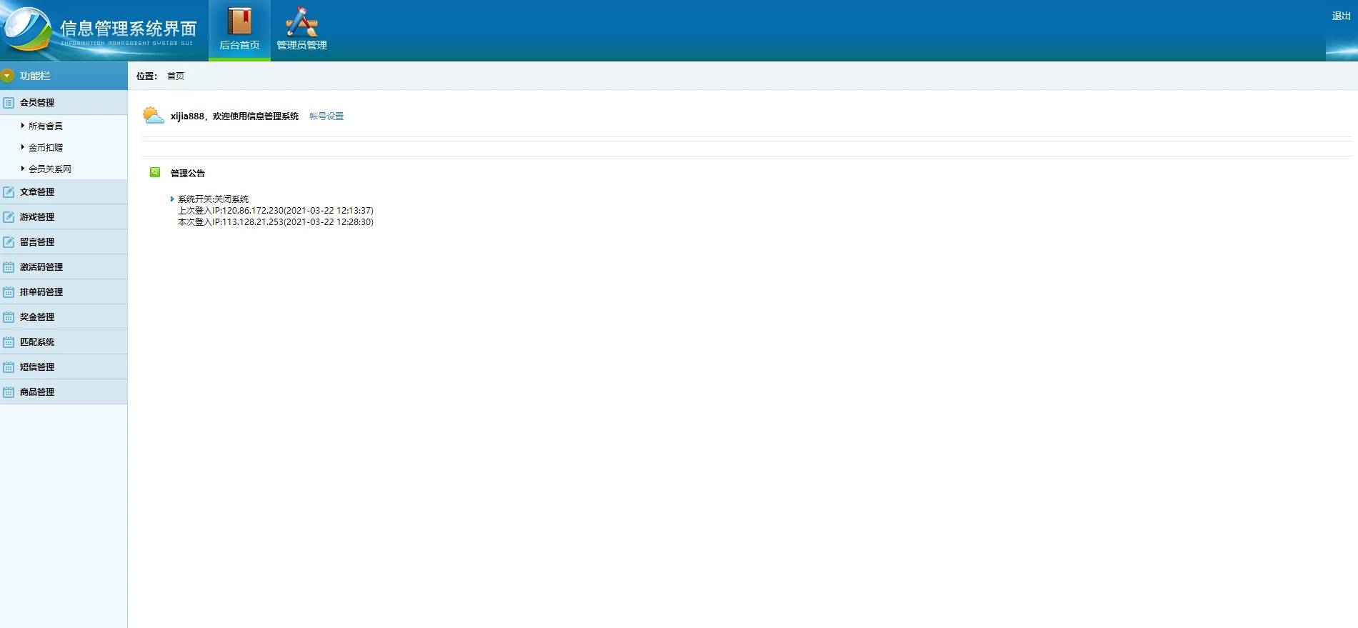 公司原先自己开发的版本,开发的时间比较早了,但是这套框架没问题,也是实际运营过,能经得住考研的版本,算法没有bug。 这个不是那种水滴筹性质的东西,不知道大家对早几年很火的互助盘是否还有印象,就是我出多少钱,放在这,然后你出多少钱, 过一段时间我能翻倍那种盘口。就这种了,生成邀请码,拉下线,人拉人的那种模式。这个类型的资源好像从来都没流出, 很早之前,记得零特那还是谁那,有放过类似的,然后数据库还缺表,跑都跑不起来。这个亲测了,没问题,正常运营。 东西如下,开发较早的缘故,是单web无wap的版本,源码无加密,有需要wap的,自己重构一个吧