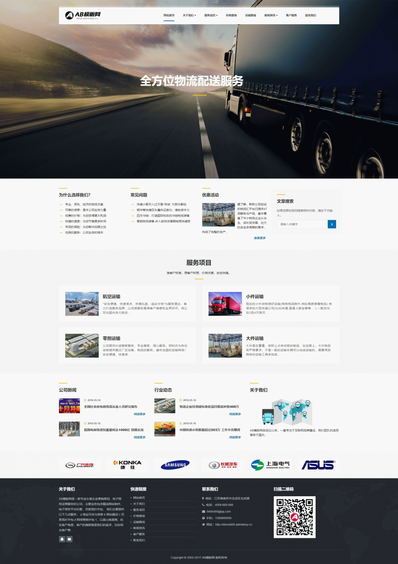快递网站源码_物流网站模板源码[带手机版数据同步]采用一库两站简洁方便管理后台,一个后台管理两网站,电脑版+手机版 1、网站手工DIV+css,代码精简,首页排版整洁大方、布局合理、利于SEO、图文并茂、静态HTML; 2、程序自带XML地图,有利于搜索引擎快速收录和排名