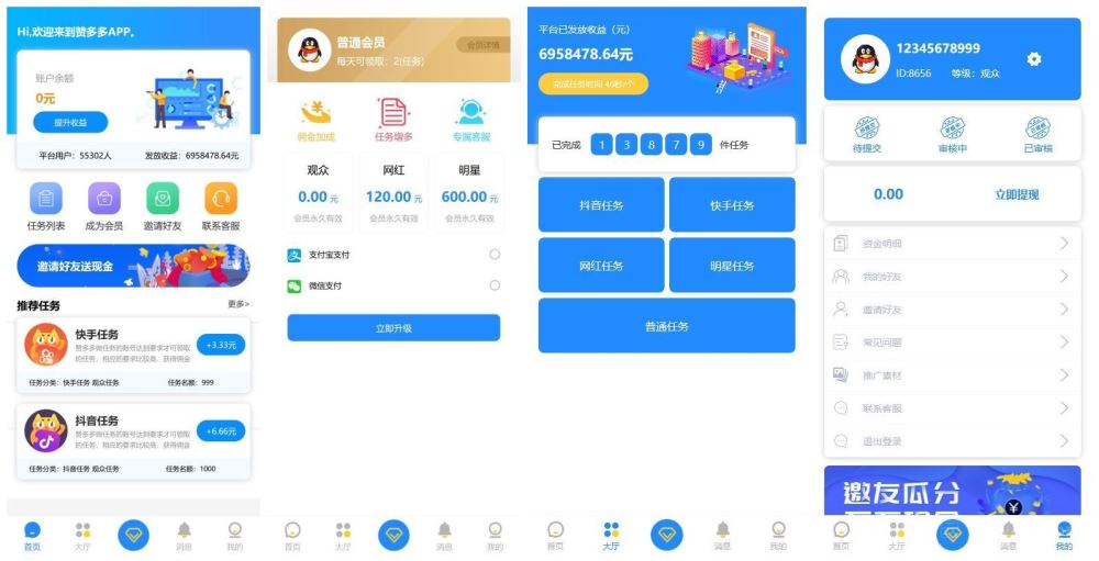 全新蓝色U抖音快速任务点赞系统源码