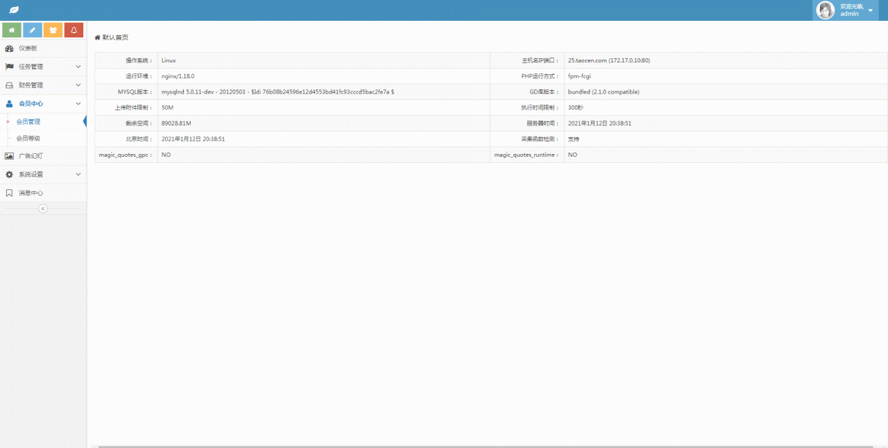 后台登录地址:/admin 账号admin 密码123456