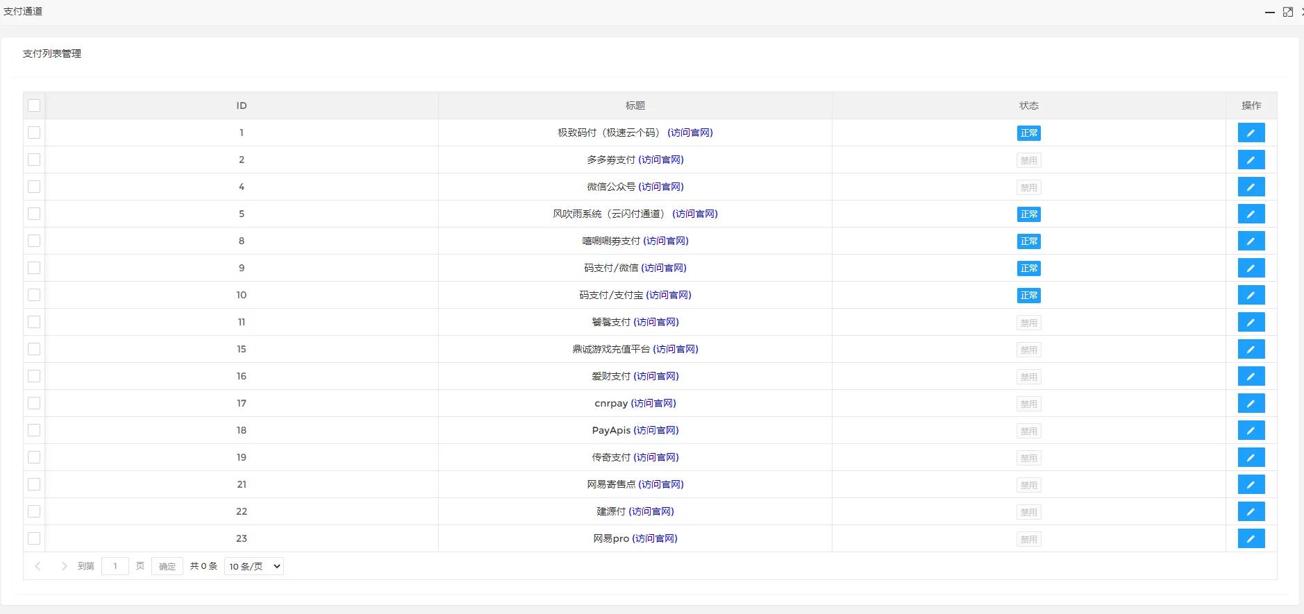 6、系统自带市面上常用的支付接口,一键配置,也可以增加新接口;