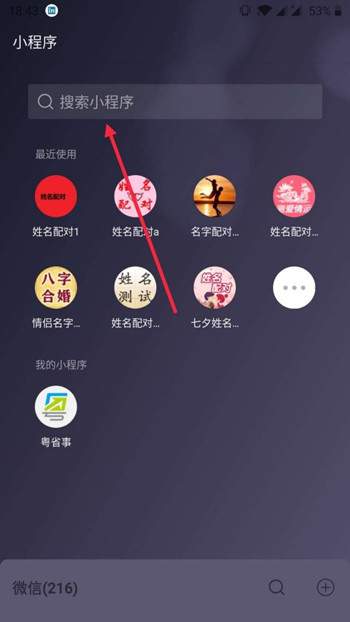 这个不难。首先打开微信,我们下拉到顶再下拉,出现小程序页面。