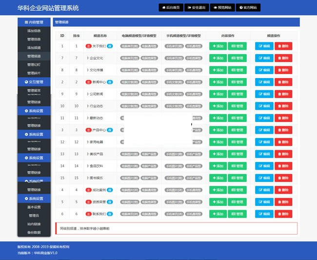 华科企业管理系统是一套基于PHP的智能建站软件!产品具有界面新颖美观、动感时尚等特点,是一套服务于中小企业的CMS内容管理系统,软件使用门槛低,无须专业电脑知识,全后台操作管理,操作简单且功能强大,同时软件还具有极强的可扩展性,可以适应各行业不同的需求。