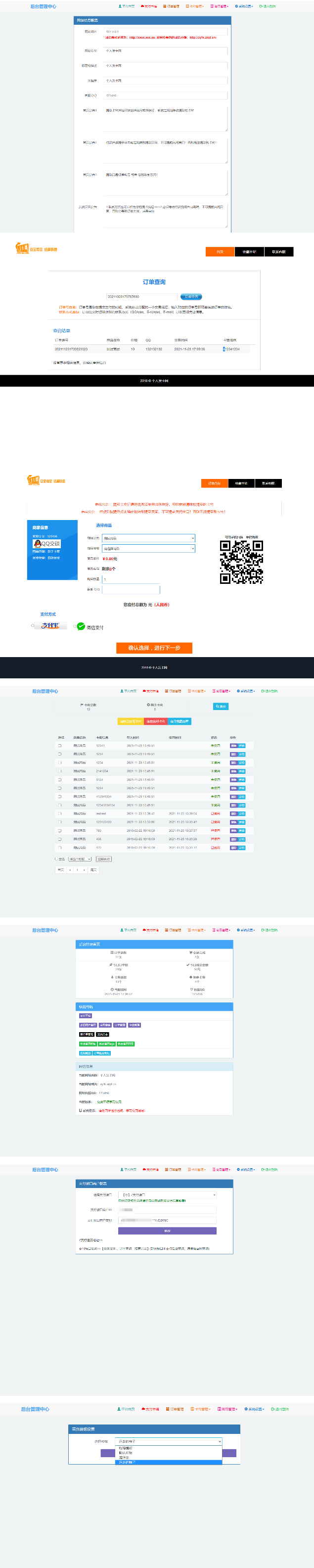 也是一款非常完整的发网,功能都正常好用,接入微信支付宝双免签通道,这个手机端的配色和UI我个人挺喜欢的,很漂亮。麻雀虽小五脏俱全,简单却好用的东西,订单查询,联系客服,卡密提取什么该有的都有,自带多套模板,背景更换,配置支付接口,直接在商户后台就可以,免去小白翻改代码的苦恼。