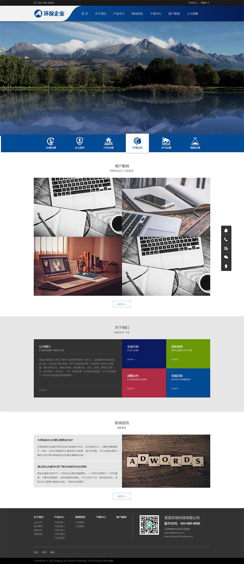 PbootCMS内核开发的网站模板,该模板适用于绿色环保网站、环保科技公司网站等企业,当然其他行业也可以做,只需要把文字图片换成其他行业的即可;