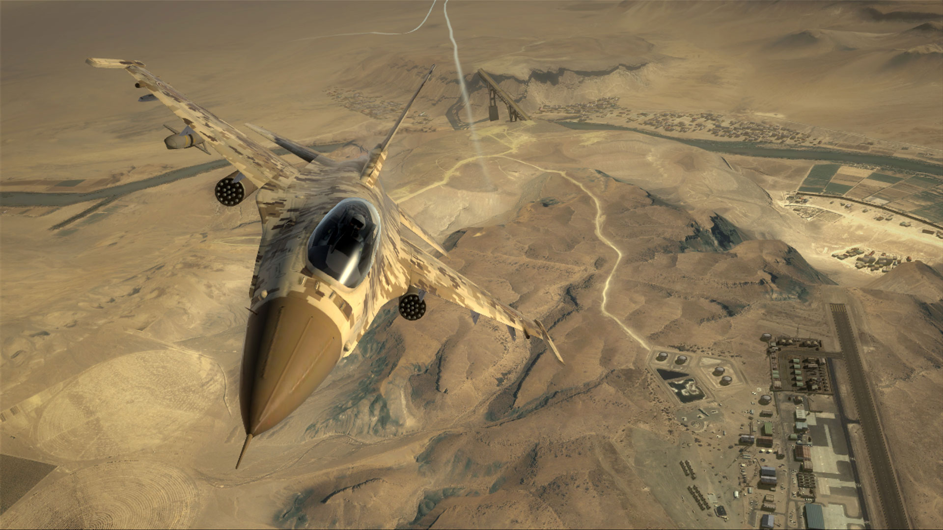 在《鹰击长空2》中,玩家将扮演精英飞行员,驾驶世界上最先进的飞机,担任一系列的战斗任务。 这一次,你不仅将投入到紧张刺激的空战和投弹中,还将负责飞机的起飞和降落工作。开发人员为我展示了飞机起飞的过程。看上去,起飞的过程和加速一样容易:达到一定的速度,拉起左侧的把手,使飞机起飞。估计整个操纵的难度也会随着游戏的难度而增加,当你选择“真实情景”模式时,应该就很有挑战性了。